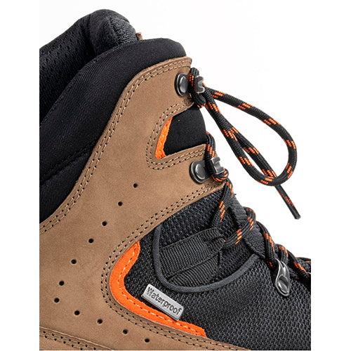 Gefertigt aus 1,8 mm starkem italienischem Nubukleder kombiniert mit abriebfestem ballistischem Gewebe bieten sie Sicherheit und Flexibilität. Ein rundum verlaufender Gummirand schützt Zehen und Seitenpartien vor Stößen und Abrieb.
