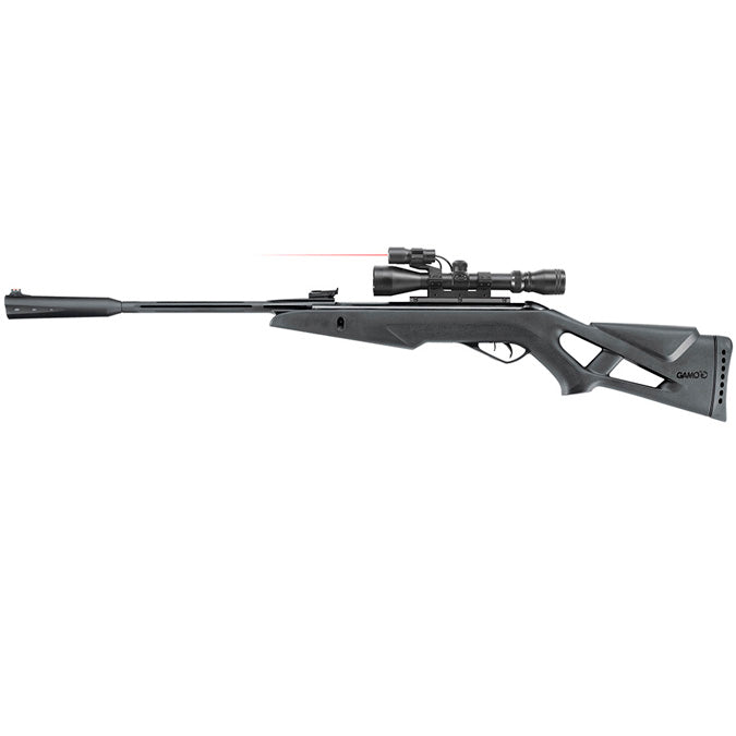 The Gamo Whisper X carbine is a powerful and accurate option with a tactical and sound-moderating design. It includes the Gamo Vampir 3-9x40 scope, mounts, laser and flashlight, making it one of the best sellers. A perfect combination!