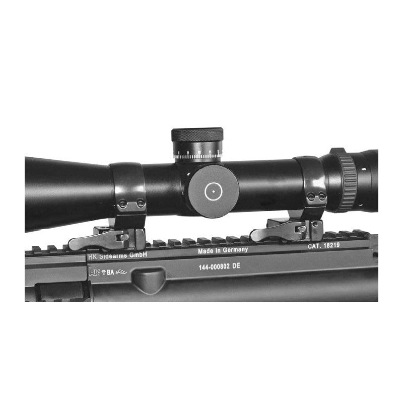 APEL afneembare Picatinny-railmontage, met 30 mm BH10 lage montageringen van staal en duraluminium. Snelle montage zonder verlies van de nul, windcorrectie-instelling en optionele 45 mm verlenging. Duitse kwaliteit, robuustheid en precisie gegarandeerd voor jacht- en schietkijkers.
