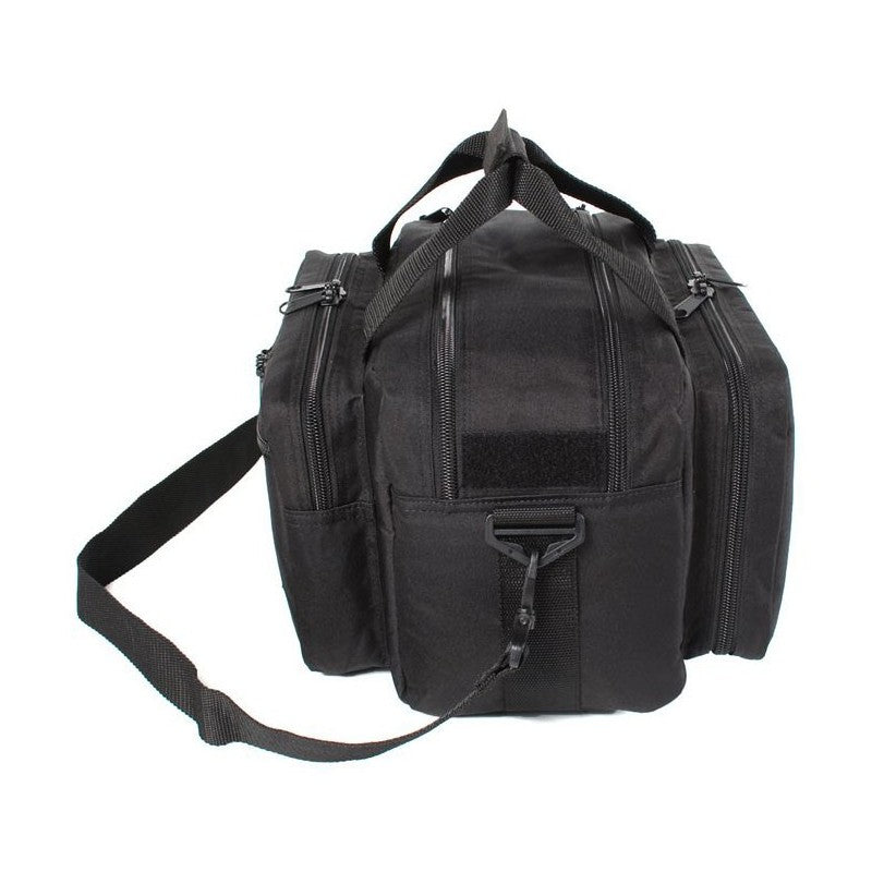 Blackhawk Sportster Deluxe Range Bag met drie compartimenten met dubbele rits en een groot open vak. Inclusief twee binnenvakken voor wapens en acht voor magazijnen of munitie. Buitenkant voorzien van MOLLE-systeem. Afmetingen: 380 x 250 x 280 mm.