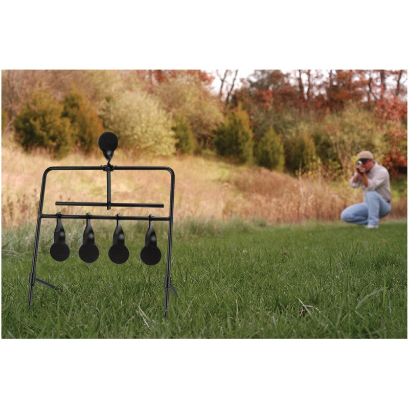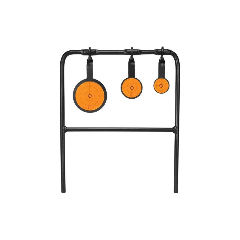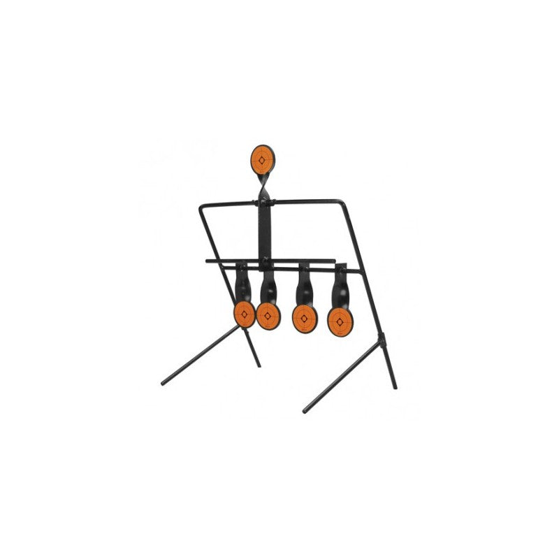 Metalen doel voor gebruik in 22 kaliber. Het bestaat uit vijf gemakkelijk te dragen kantelbare doelen. Geweldig hulpmiddel voor beginners en veel plezier voor iedereen. Gemaakt van zeer duurzaam staal. Je kunt de impact van je projectielen zien en horen.