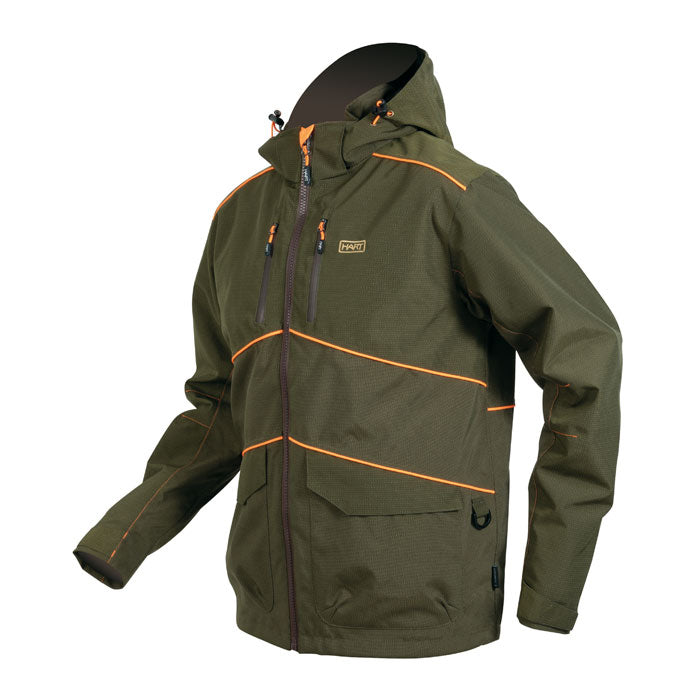 De Hart ARMOTION-J SPORT jachtjas is kort, versterkt en ontworpen voor de actieve jacht. Gemaakt van Oxford nylon met rip-stop, biedt het een hoge waterdichtheid (8000 mm) en ademend vermogen (5000 gr/m2). Het heeft cargozakken, radio/GPS, rugzak aan de achterkant en afneembare capuchon.
