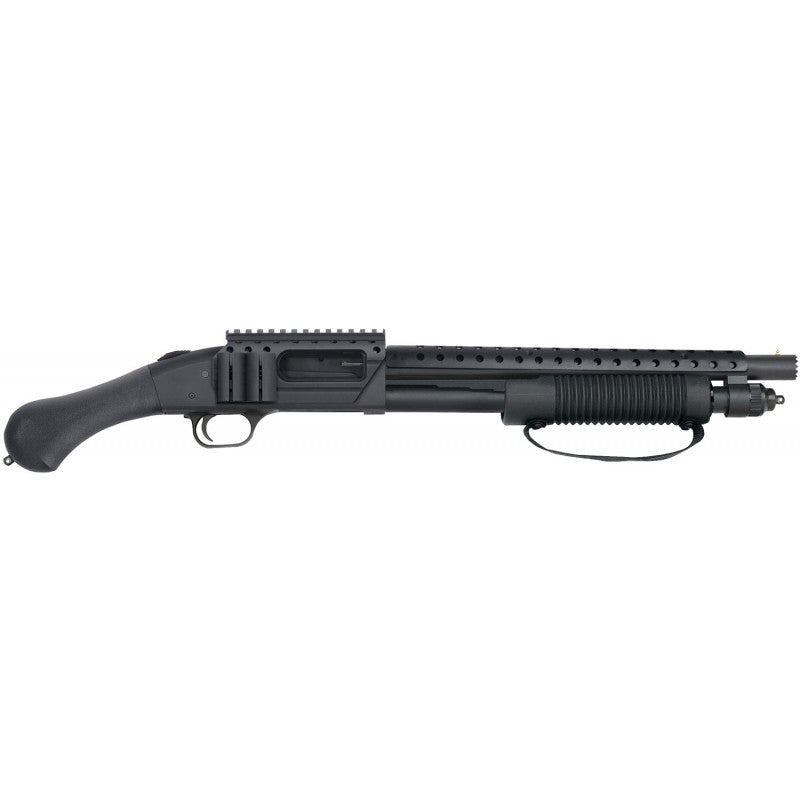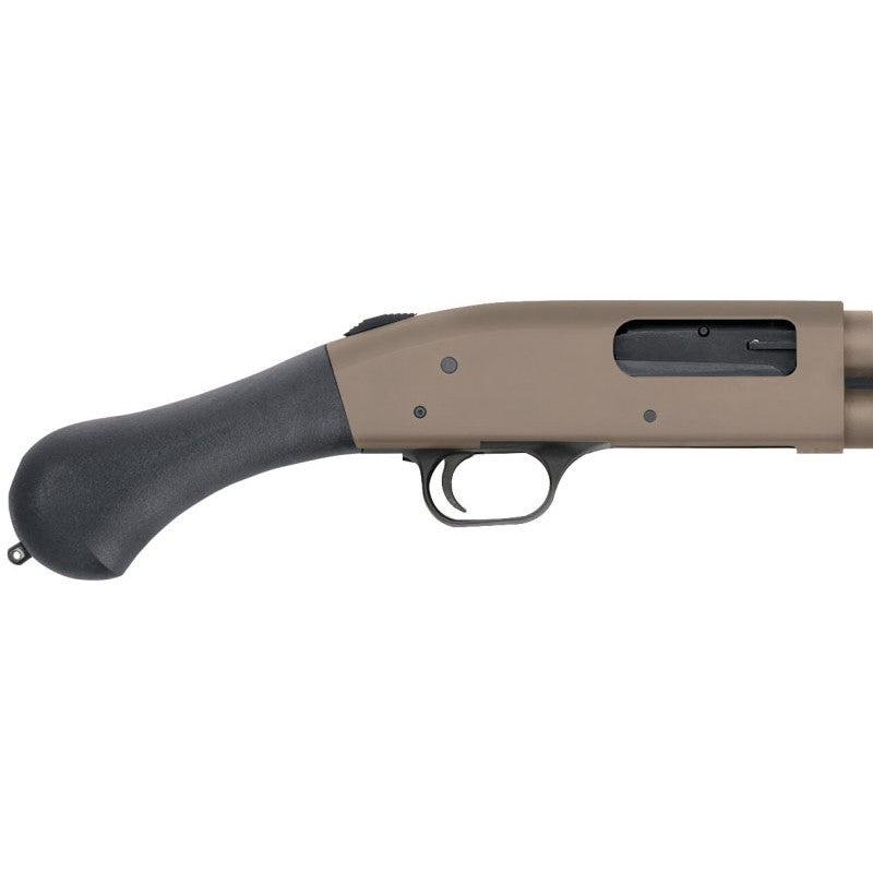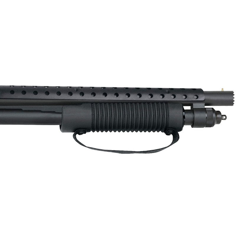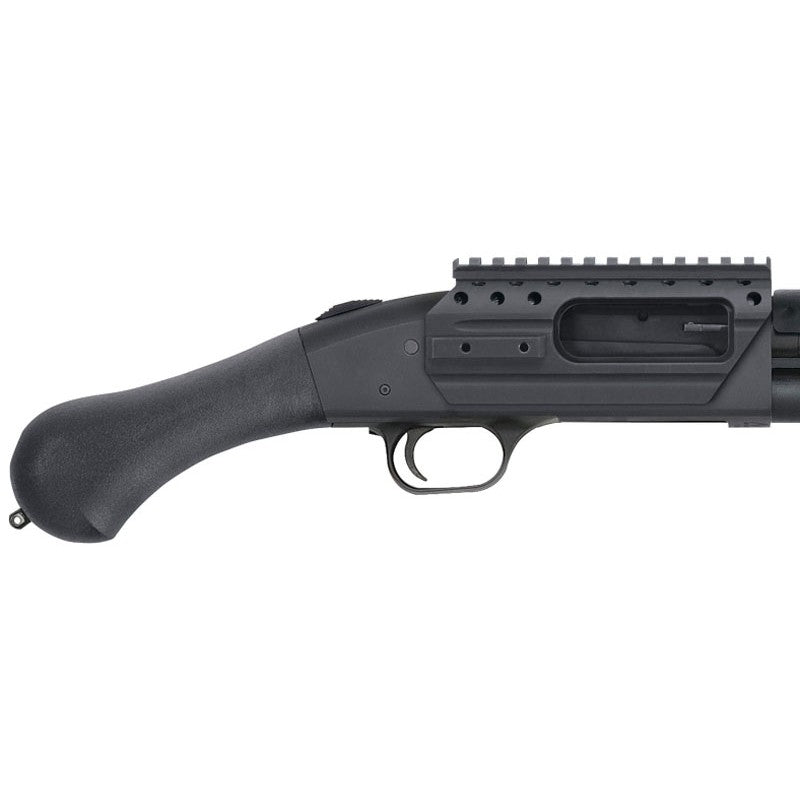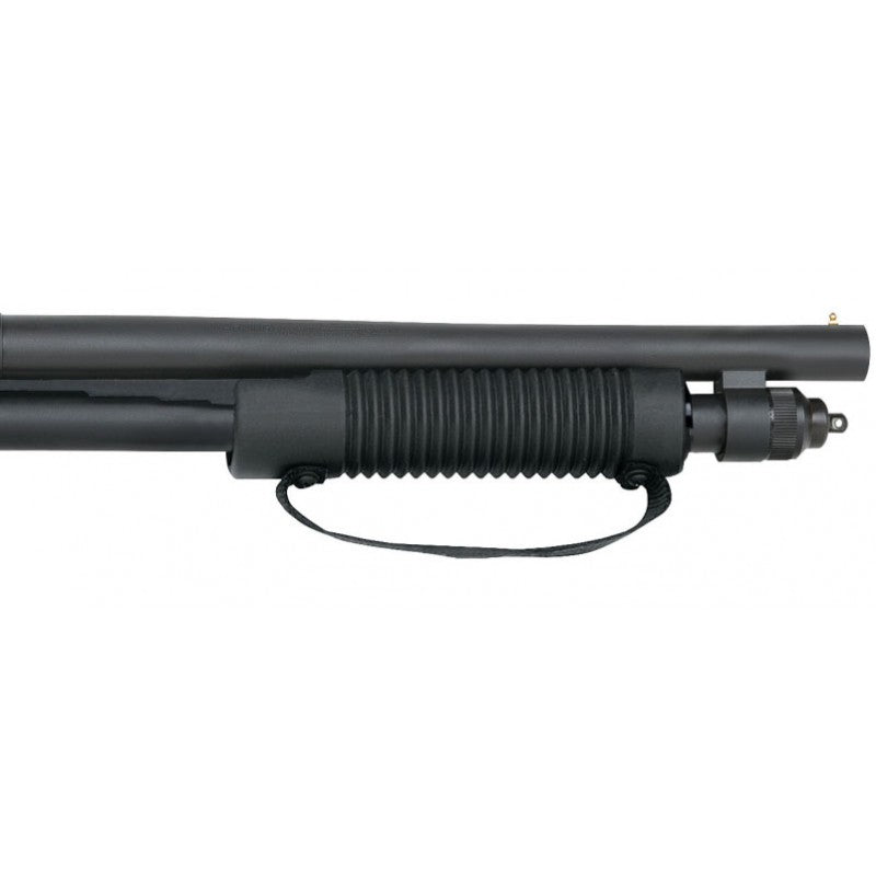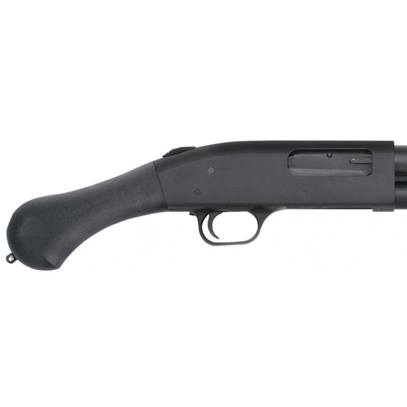 La Mossberg 590 Shockwave es una escopeta muy compacta de tan solo 67 cm. de longitud. Se caracteriza por tener una empuñadura de pistola “Raptor”, fabricada en polímero muy resistente con un acabado texturizado mejorado, y su forma de "cabeza de pájaro” que permite un control máximo del arma y minimiza el retroceso. El guardamanos táctico viene con correa para un mayor control y un funcionamiento más suave.
