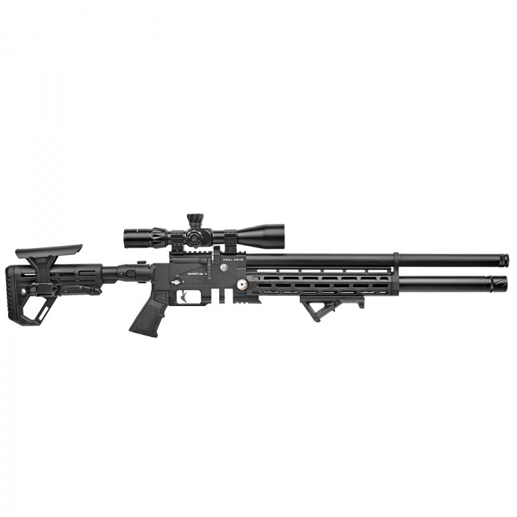 Kral Puncher Mortal X PCP karabijn met cilinderinhoud: 330 cc.  Synthetische opvouwbare voorraad. Verstelbaar wangkussen en bilkussen.